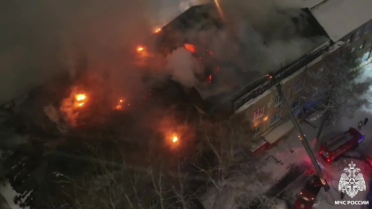 В Новосибирске сотрудники МЧС России ликвидируют пожар в 3-этажном административном здании