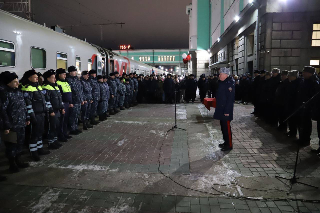 Полицейских приветствовали врио начальника ГУ МВД России по Новосибирской области генерал-майор полиции Кирилл Травин, руководители аппарата Главка, а также родные и близкие вернувшихся полицейских.