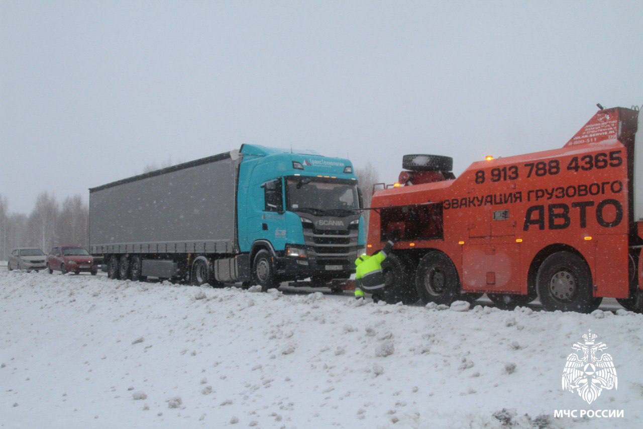 техника отбуксировала большегруз;