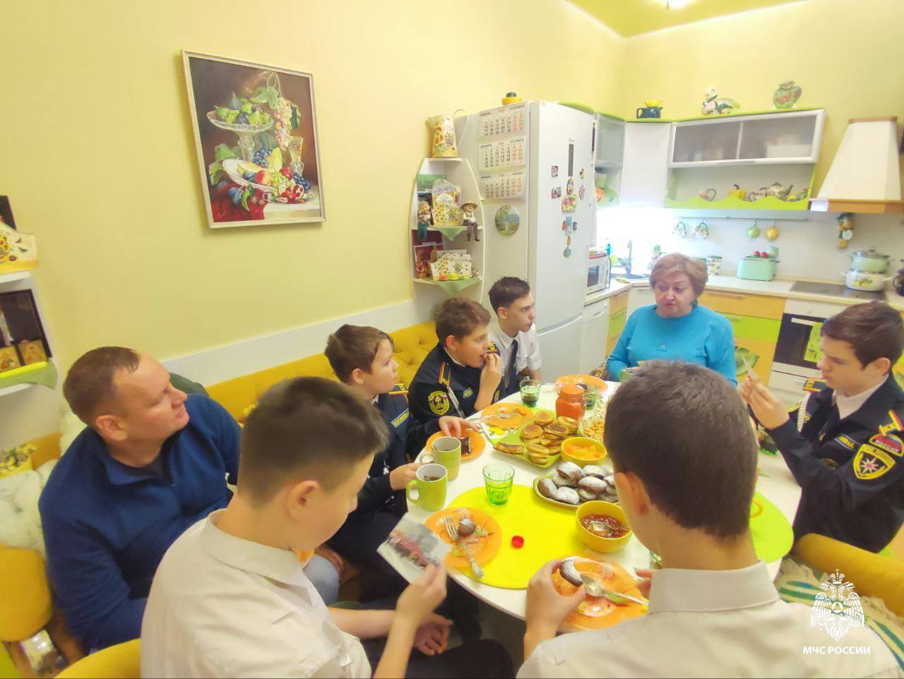 После чего, за чашкой ароматного чая завязалась теплая и душевная беседа. Фарида Фаридовна поделилась с кадетами воспоминаниями о своей работе, истории пожарной охраны, нелегкой профессии пожарного-спасателя, дала ценные советы подрастающему поколению.