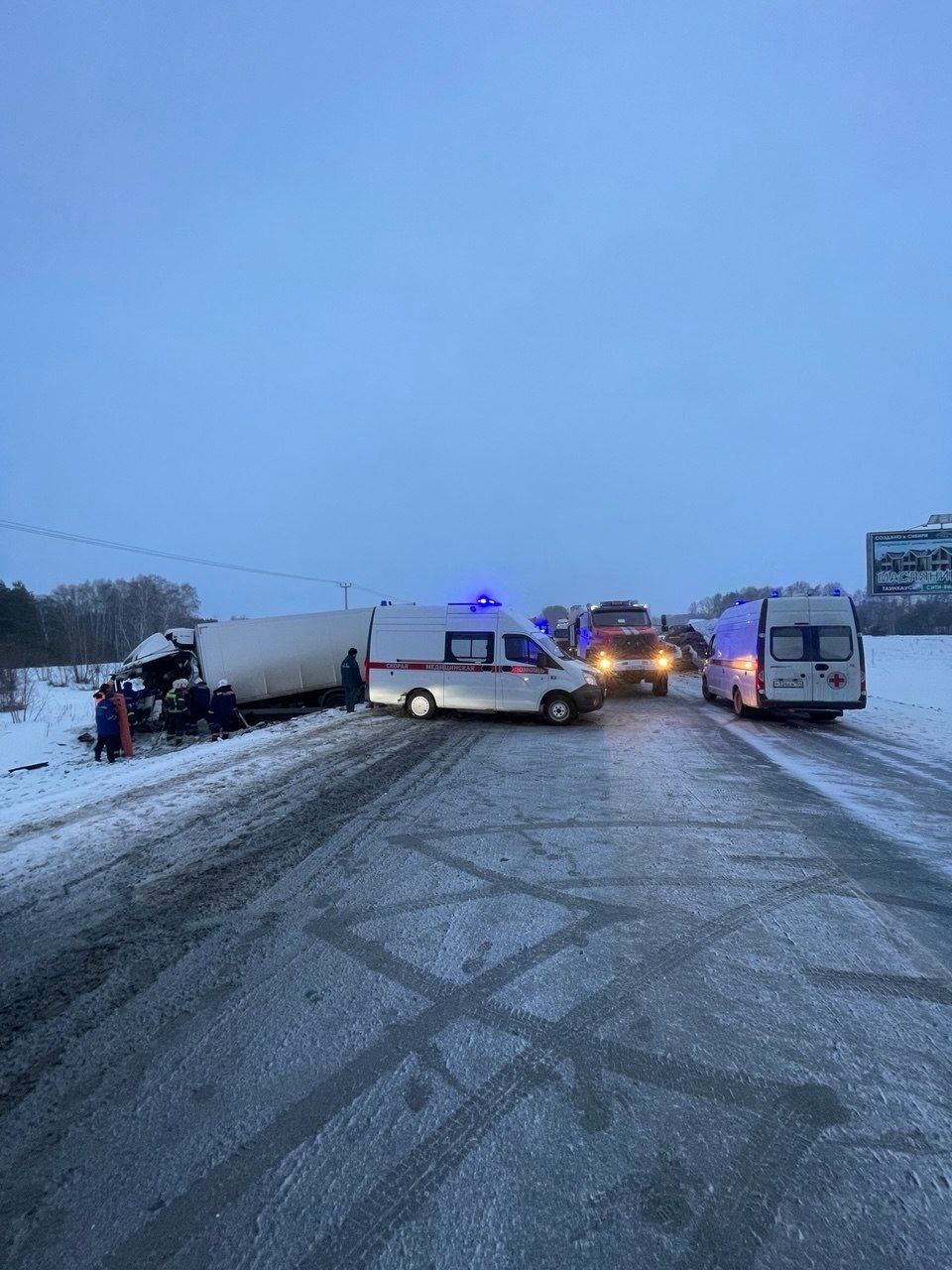 По предварительной информации, 04.12.2025 года около 16 часов 40 минут на территории Искитимского района на 53 км автодороги Р-256, водитель мужчина на вид 30 лет, двигаясь на автомобиле Форд Транзит со стороны г. Барнаул в сторону г.Новосибирск, выехав на полосу встречного движения, совершил столкновение с грузовым автомобилем Ман, под управлением водителя- мужчины на вид 45 лет, который двигался во встречном направлении.