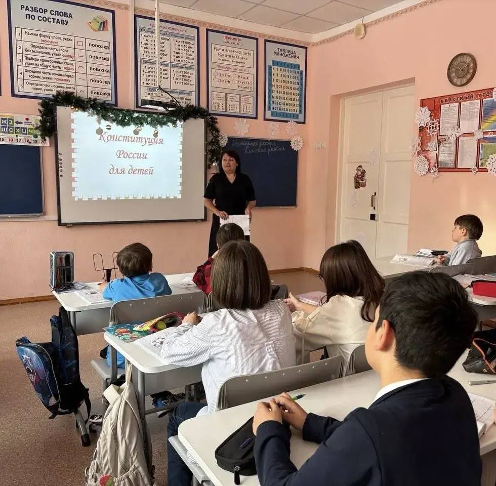 12 декабря 2025 года юрисконсультом информационно-аналитического отдела Правого управления ГУ МВД России по Новосибирской области майором внутренней службы Юлией Ушаковой в МБОУ СОШ 29 с углубленным изучением истории и обществознания г. Новосибирска с учениками 3-х и 4-х классов проведено мероприятие, посвященное Дню Конституции Российской Федерации.