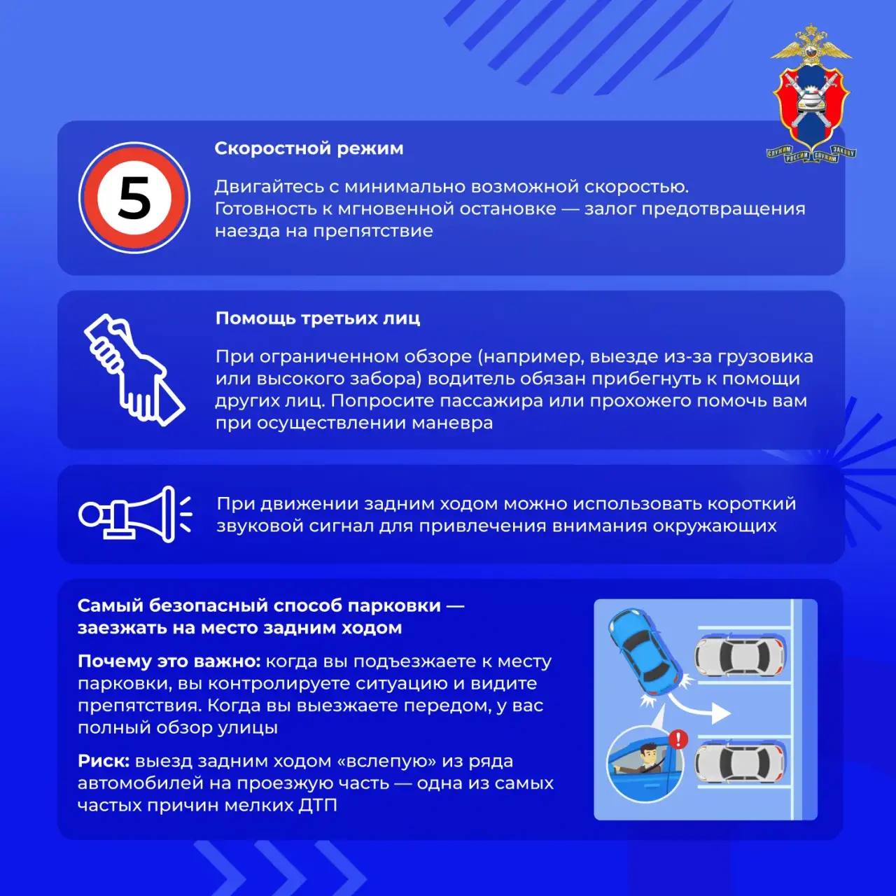 Как подготовиться к маневру и обеспечить визуальный контроль, с какой скоростью двигаться и в каких случаях стоит прибегнуть к помощи других людей.