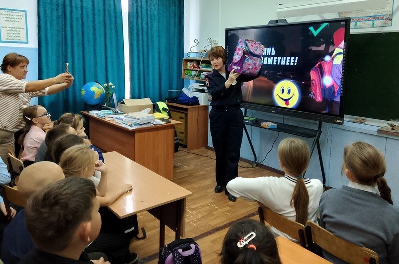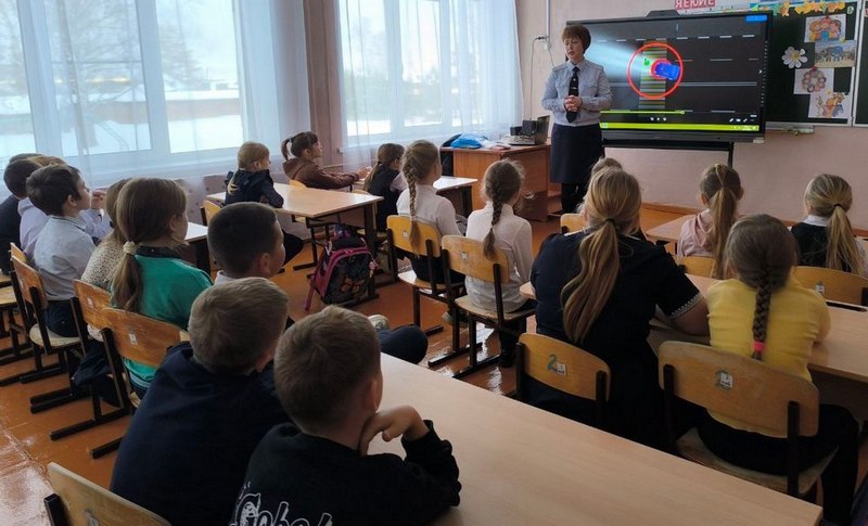 Сотрудники Госавтоинспекции, юидовцы и педагоги проводят со школьниками беседы, напоминая о правилах поведения на зимних дорогах.