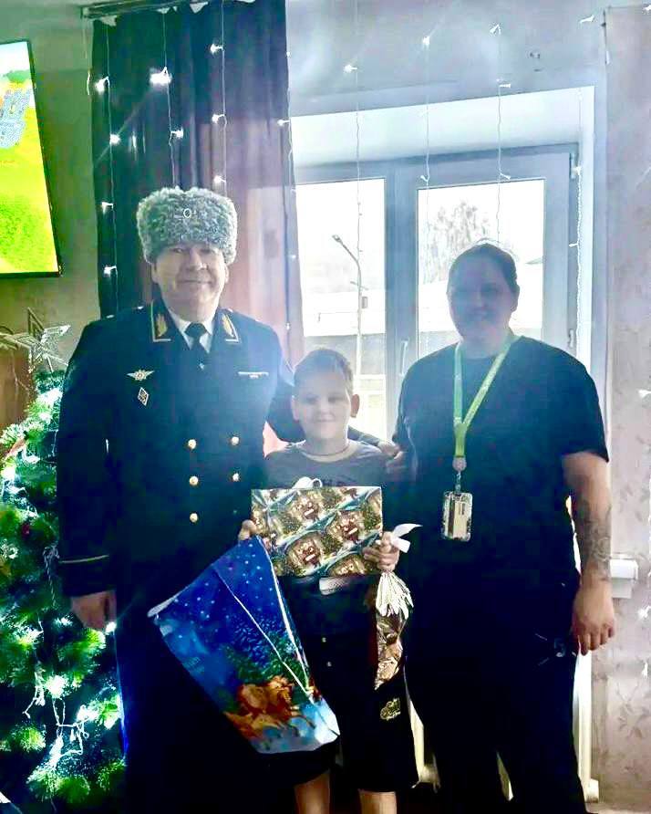 В торжественной обстановке мальчику вручили подарки. Начальник Главного следственного управления поздравил семью с наступающим Новым годом, пожелал здоровья, отличного Нового года, отличного настроения, тепла, уюта и счастья в семье!