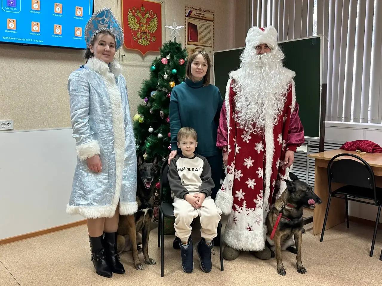У входа в Центр кинологической службы мальчика радостно приветствовали Дед Мороз и Снегурочка, которые поздравили Ярослава и его маму с наступающим праздником.
