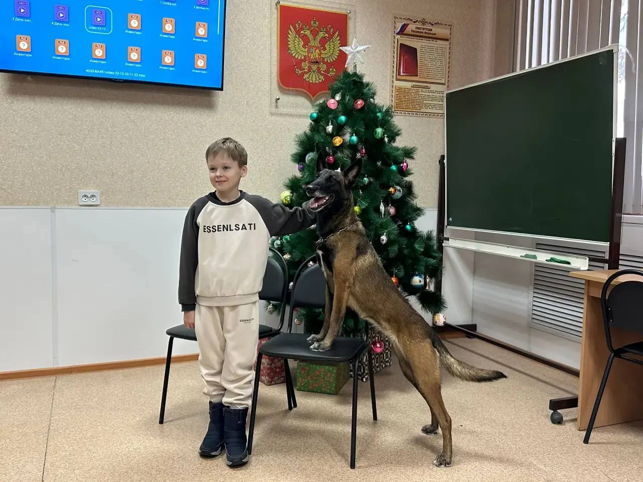 Дед Мороз рассказал мальчику о профессии кинолога, показал, как содержатся и тренируются четвероногие напарники полицейских, после чего продемонстрировали показательные выступления животных, выполняющих различные команды и упражнения.