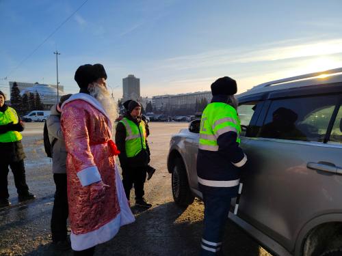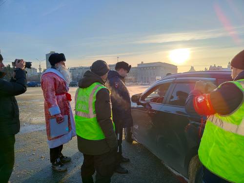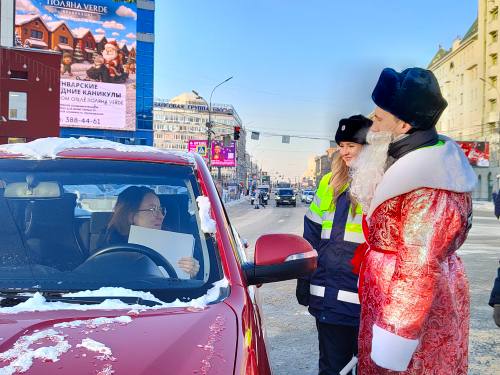 Полицейский Дед Мороз поздравил автолюбителей Новосибирска