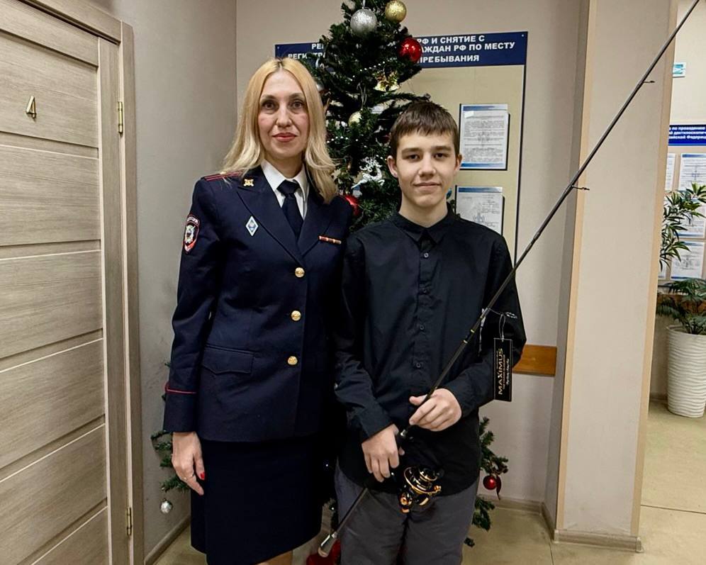 И вот, некоторое время спустя, Артём вместе со своей мамой приехал в отделение по вопросам миграции отдела полиции №1 «Центральный» Управления МВД России по городу Новосибирску, где сотрудники поздравили его с наступающим Новым годом и вручили радостному мальчику его долгожданный подарок – спиннинг.