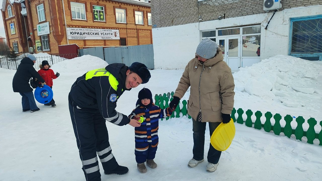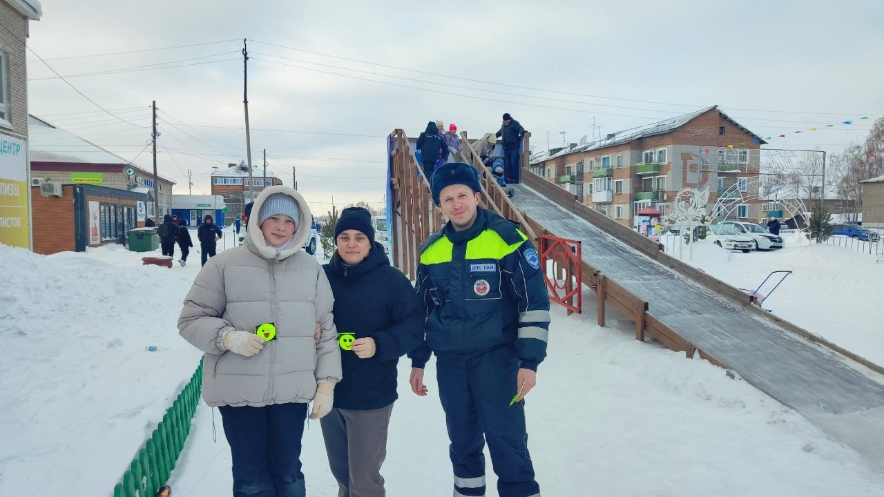 В снежном городке рабочего поселка Чаны сотрудники Госавтоинспекции провели профилактическую акцию «Засветись!», в ходе которой поздравили детей и их родителей с праздниками, побеседовали о необходимости соблюдения правил дорожного движения, призвали быть внимательными при переходе проезжей части, напомнили о важности использования световозвращающих элементов на одежде в темное время суток и подарили юным пешеходам фликеры.