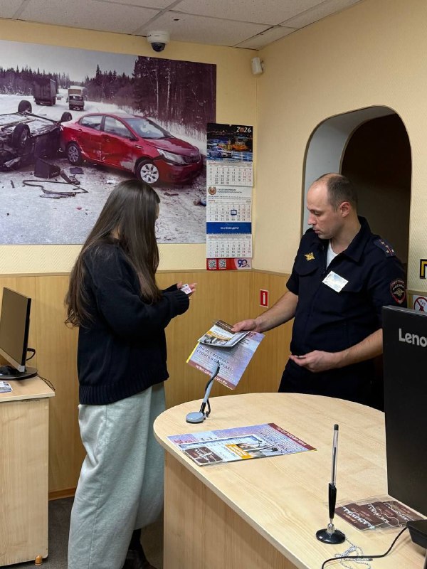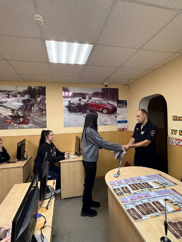 Автоинспекторы вручили начинающим водителям водительские удостоверения.