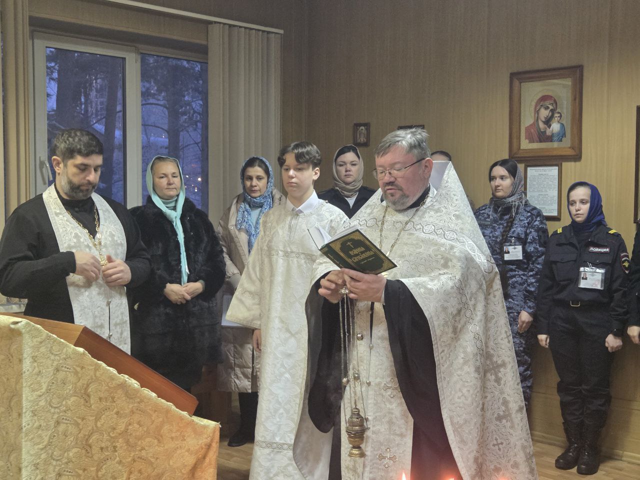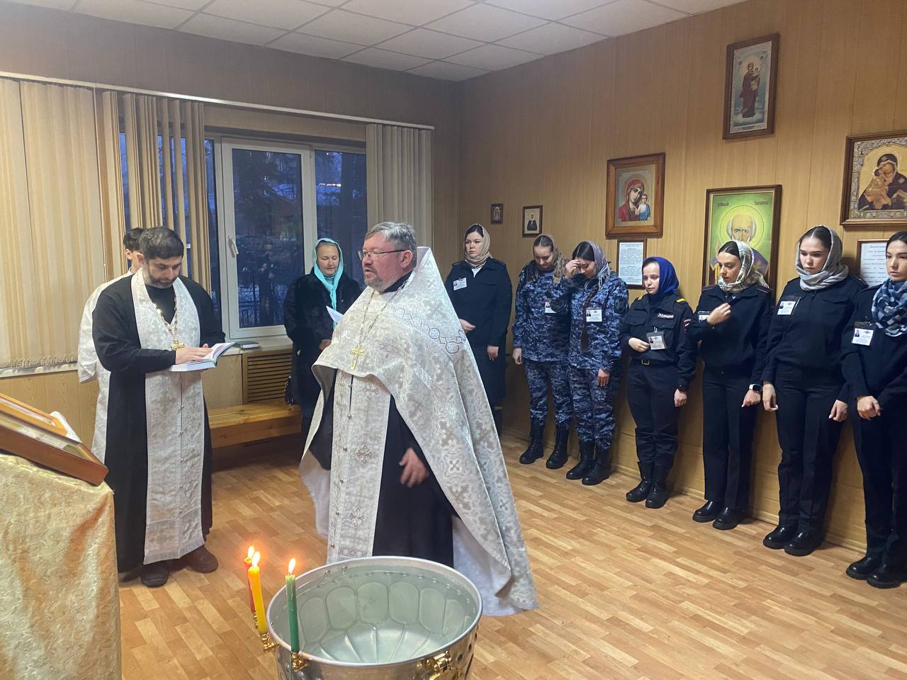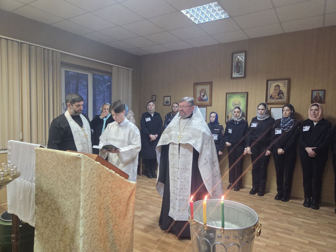 Также в этот день в храме Центра профессиональной подготовки ГУ МВД России по Новосибирской области член Общественного совета при областном Главке МВД протоиерей Сергий Коновалов провел церковное богослужение,в котором приняли участие слушатели и преподавательский состав Центра. В ходе богослужения был проведен обряд освящения воды,служебных помещений и учебных аудиторий.
