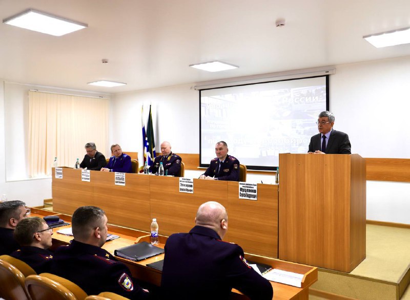 С докладом выступил начальник городского Управления полковник полиции Алексей Захаров.
