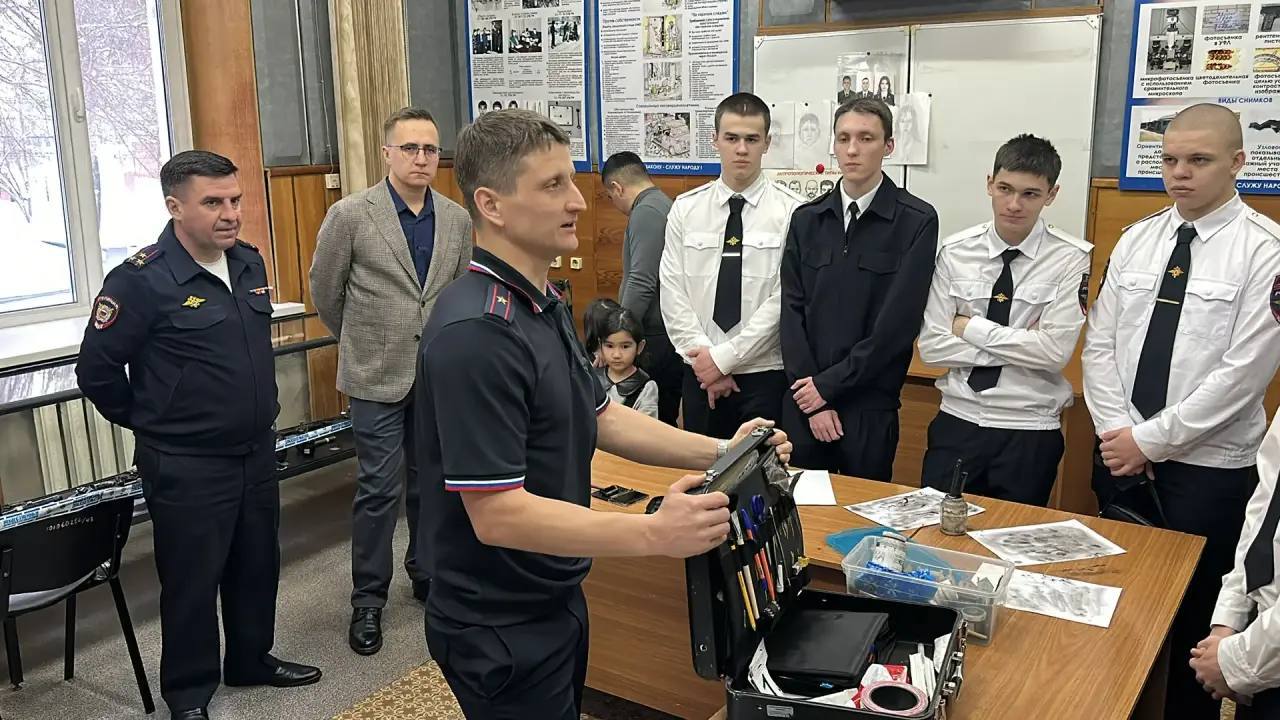 Также учащиеся ознакомились с учебными полигонами Центра. Здесь преподаватели ЦПП ГУ рассказали десанту о проведении следственных действий на месте преступления, о том, как инспектор ДПС регулирует дорожное движение, а также об алгоритме действий дежурного при поступлении в дежурную часть сообщений о преступлениях и правонарушениях. Особый интерес студентов вызвал класс криминалистики, где им продемонстрировали унифицированный криминалистический чемодан, предназначенный для изъятия образцов с места преступления, рассказали о технике сбора вещественных доказательств.
