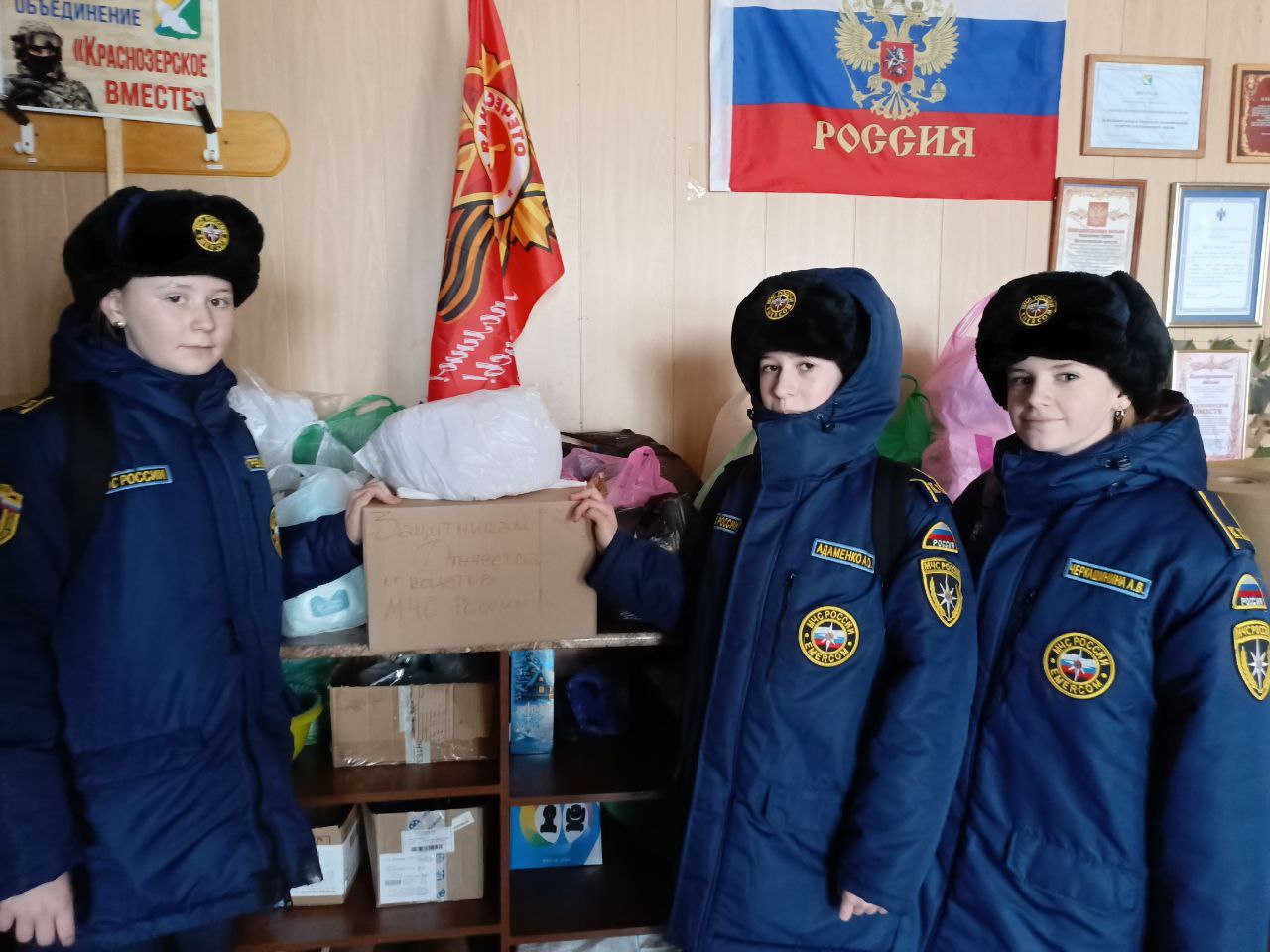 Кадеты под шефством МЧС России передали посылки и подарки для тех, кто сейчас находится на передовой