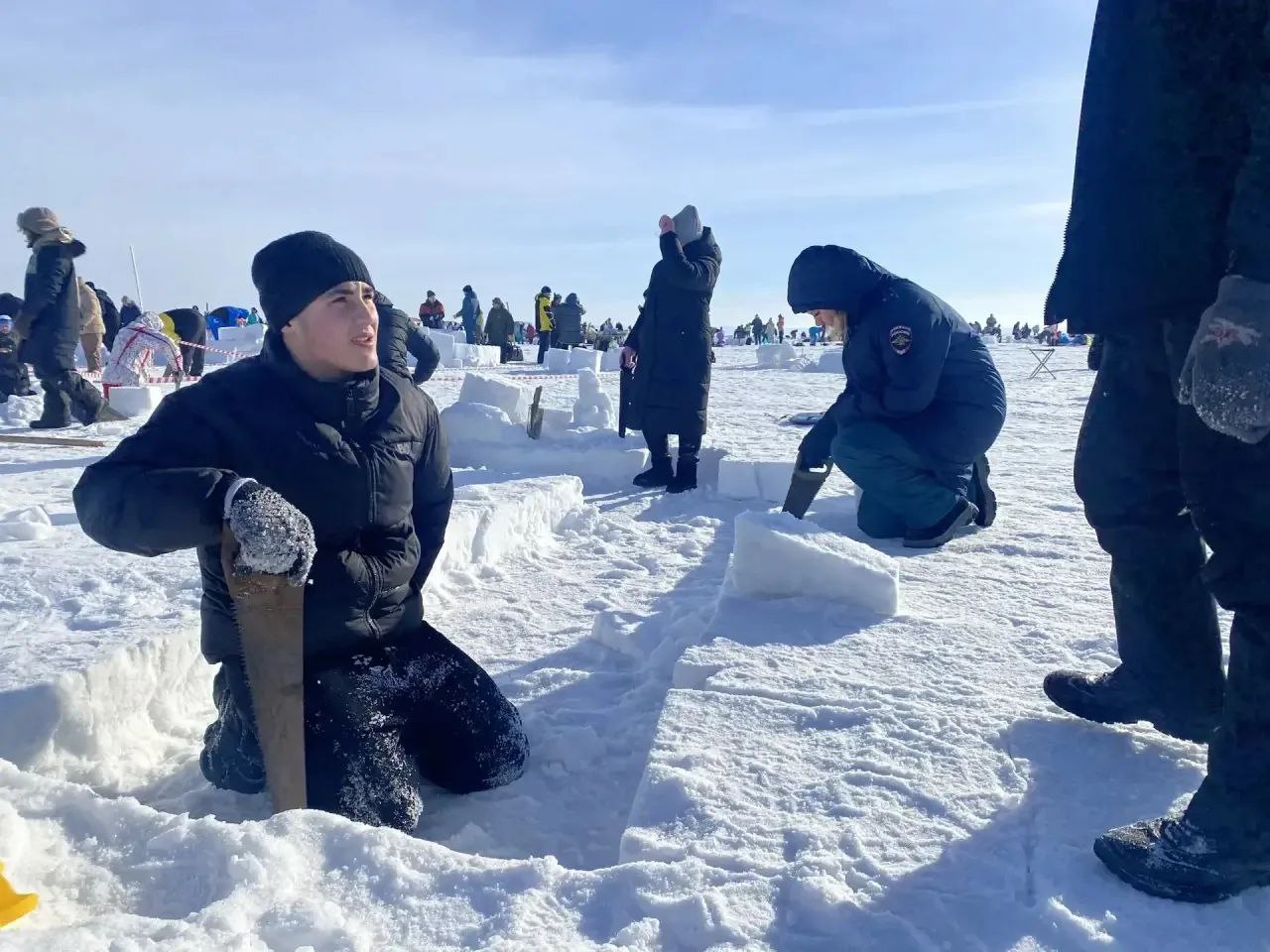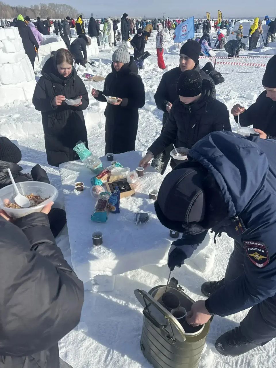 Сегодня в Новосибирске на пляже «Бумеранг» прошел XVI ежегодный зимний фестиваль «Иглу-2026. Город эскимосов». На участие в грандиозном по масштабам спортивно-развлекательном событии подали заявки более 600 команд. Одной из них стала сборная транспортных полицейских Сибири и их подшефных - воспитанников Центра содействия семейному устройству детей-сирот и детей, оставшихся без попечения родителей, «Дорогинский».
