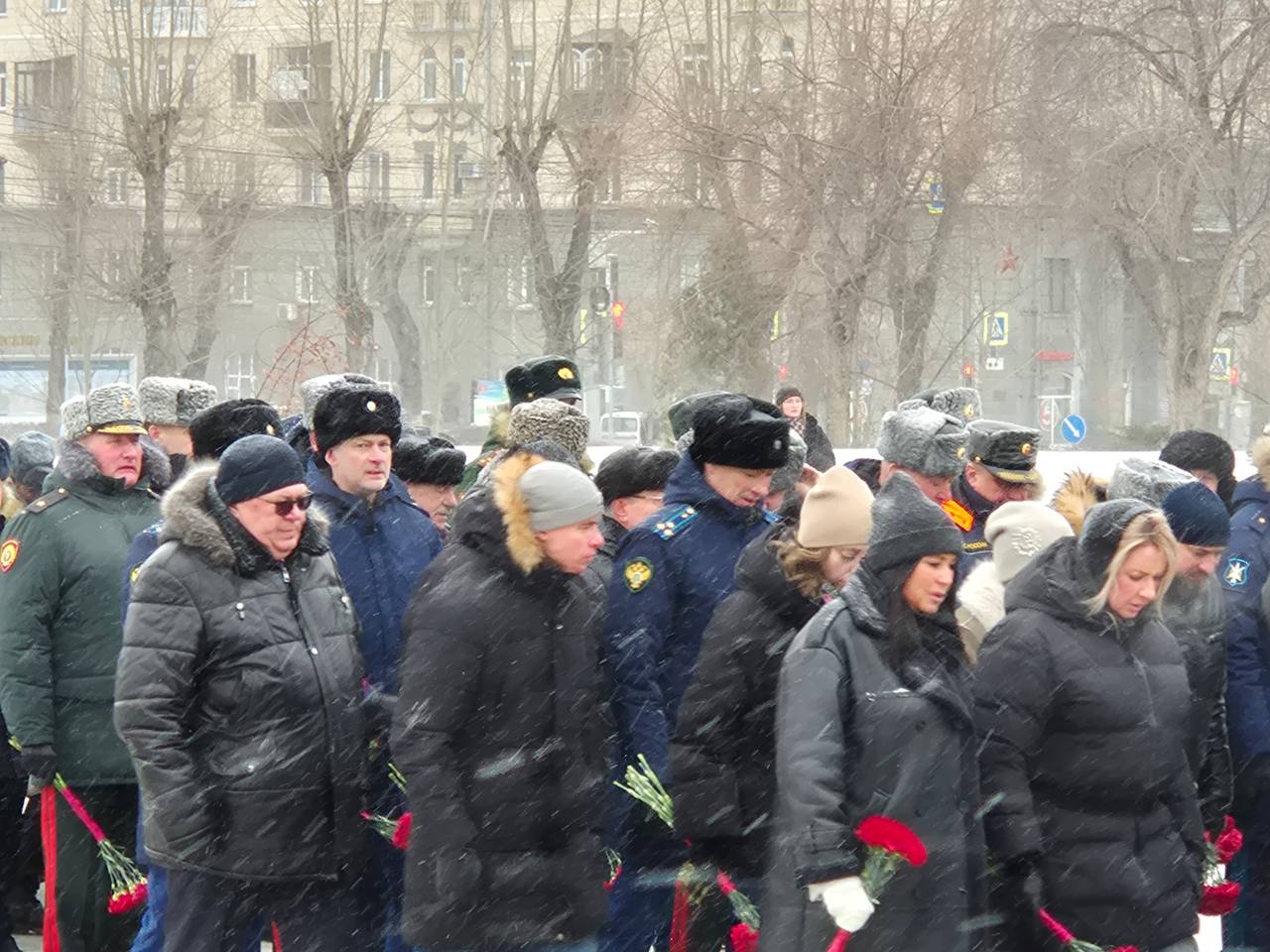Сегодня в Новосибирске состоялась церемония возложения цветов к Вечному огню на Мемориальном ансамбле «Монумент Славы», посвященная Дню защитника Отечества