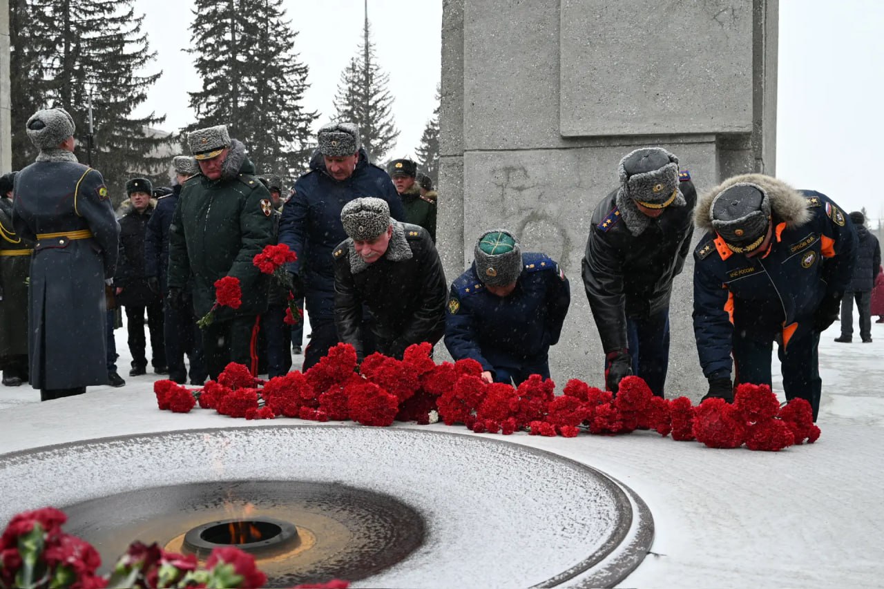 В День защитника Отечества руководитель следственного управления СК России по Новосибирской области возложил цветы к Монументу Славы