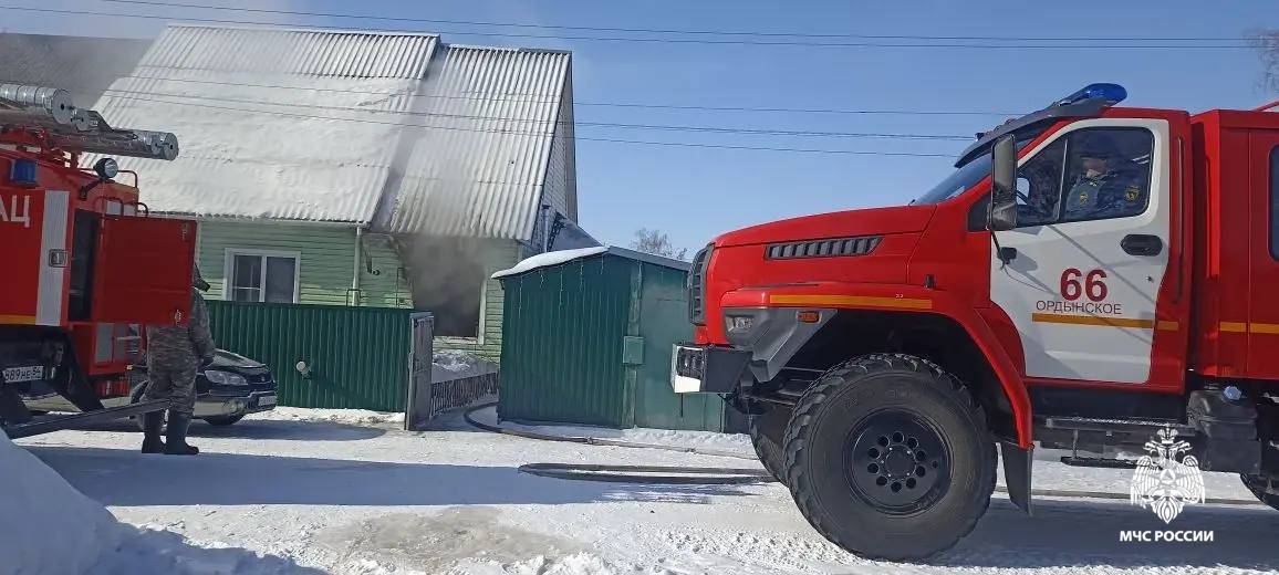 На пульт оперативного дежурного в 12:41 поступило сообщение о пожаре в рабочем поселке Ордынское Новосибирской области. Через пять минут пожарные прибыли на место вызова, в этот момент из окна частного жилого дома шел дым.