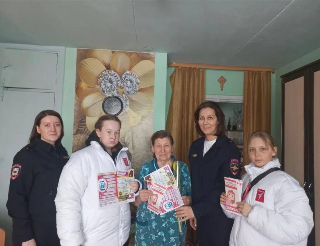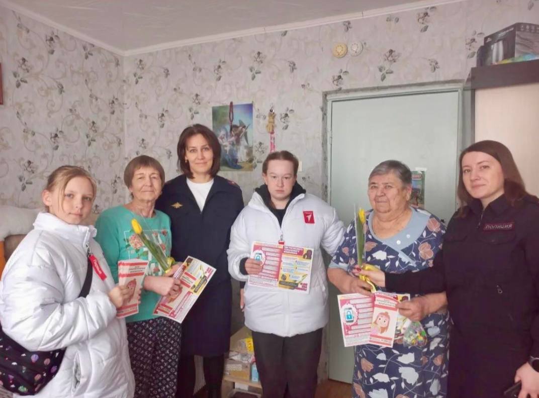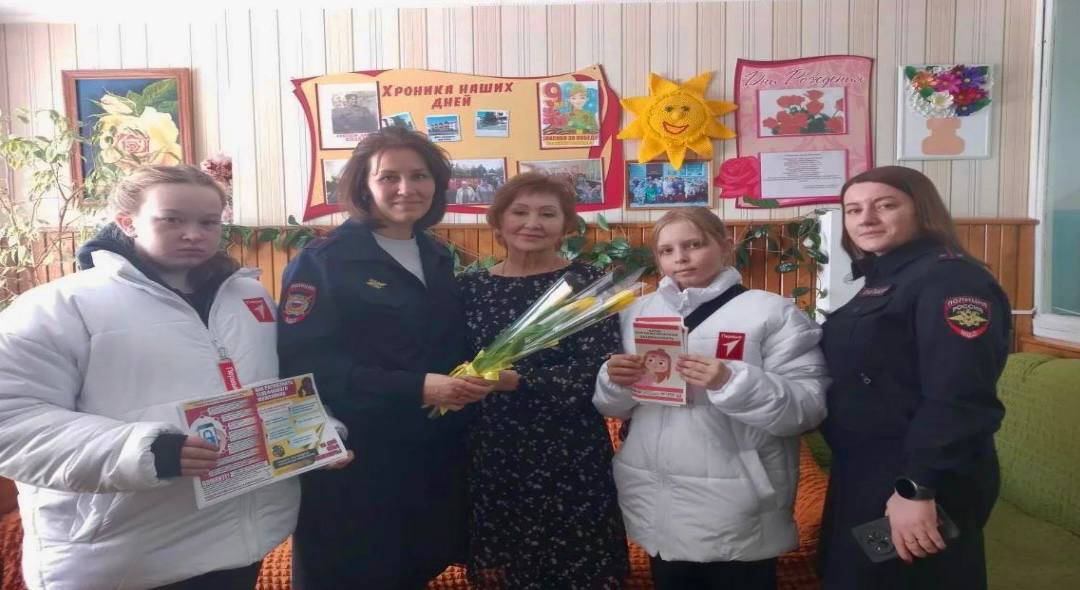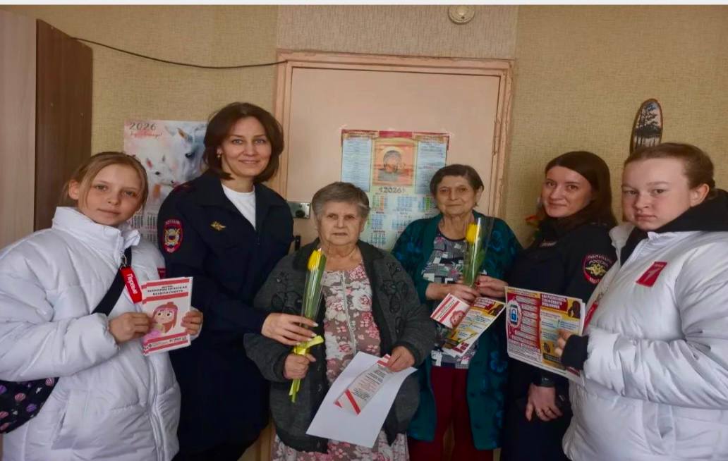 Сотрудники полиции вручили женщинам цветы, пообщались, узнав о состоянии здоровья, предложили помощь и конечно предупредили о различных видах преступлений, в том числе мошенничествах.