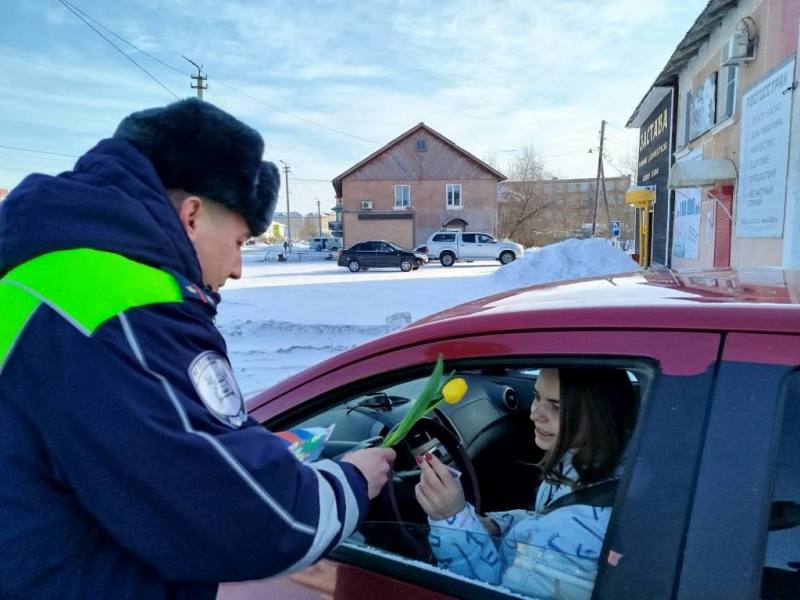 В Новосибирской области сотрудники Госавтоинспекции Межмуниципальных отделов МВД России «Татарский» и «Барабинский» присоединились к ежегодной Всероссийской акции МВД «Цветы для автоледи».