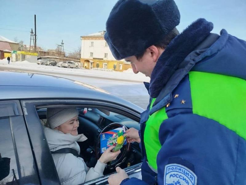 Полицейские останавливали представительниц прекрасного пола, управляющих автомобилем, не для проверки документов, а для поздравления с предстоящим праздником. Госавтоинспекторы дарили женщинам цветы и открытки.