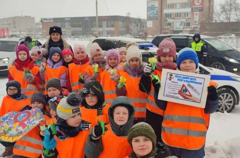 Накануне Международного женского дня - 8 Марта автоинспекторы города Бердска совместно с отрядами Юных инспекторов движения провели праздничную акцию «Поздравления Автоледи».