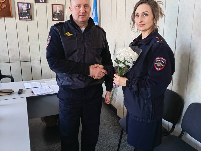 Начальник Отделения МВД России по Чистоозерному району подполковник полиции Александр Фещенко и мужская половина коллектива поздравили женщин-сотрудников с праздником весны.