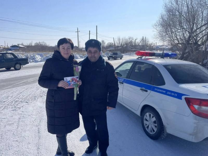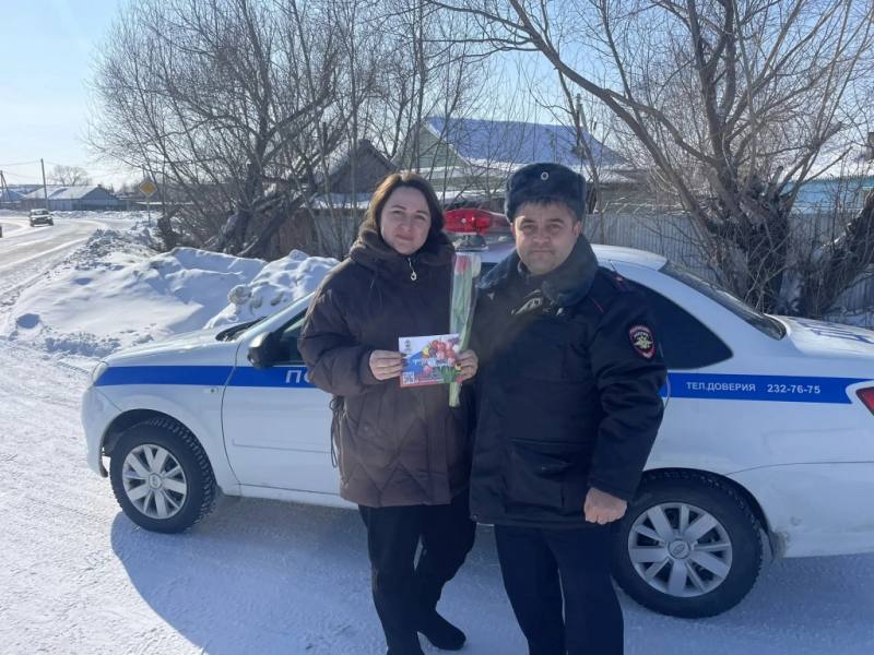 Праздничное настроение в честь Международного женского дня сотрудники Госавтоинспекции создали и на дорогах Чистоозерного района. Полицейские останавливали автомобили, за рулем которых находились женщины, чтобы поздравить их с наступающим праздником и вручить цветы. Автоледи желали счастья, добра, весеннего настроения и всегда соблюдать правила дорожного движения.