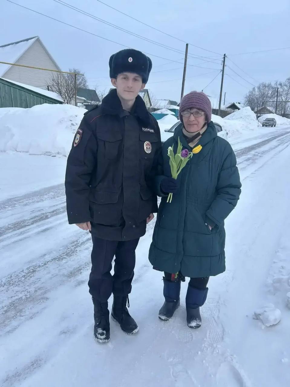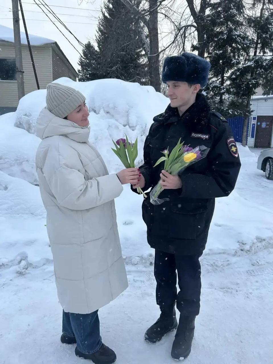 В рамках мероприятия сотрудники полиции поздравили жительниц района. Женщины получили теплые слова, самые искренние пожелания и, конечно же, весенние цветы.
