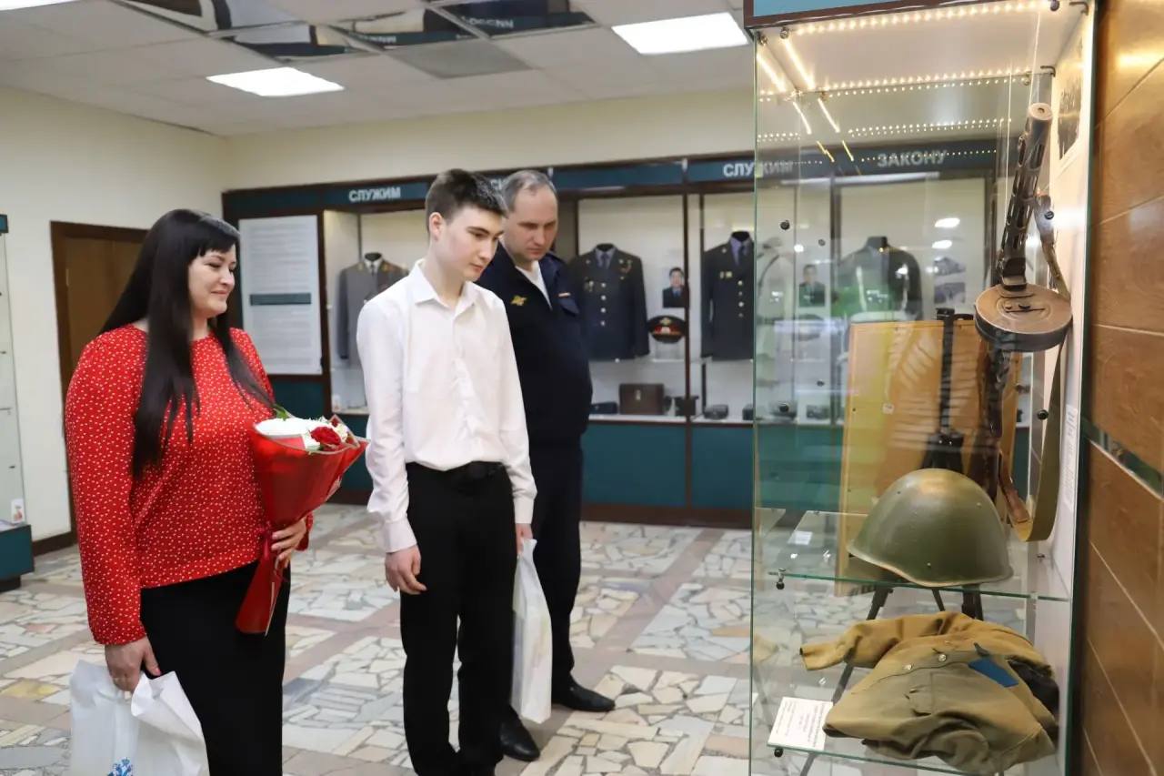 Сотрудниками Главного управления для победителей викторины проведена экскурсия, в ходе которой они смогли увидеть предметы полицейской униформы: головные уборы, форменное обмундирование офицеров полиции, фотокамеры, образцы оружия, в том числе состоящего на вооружении органов внутренних дел.