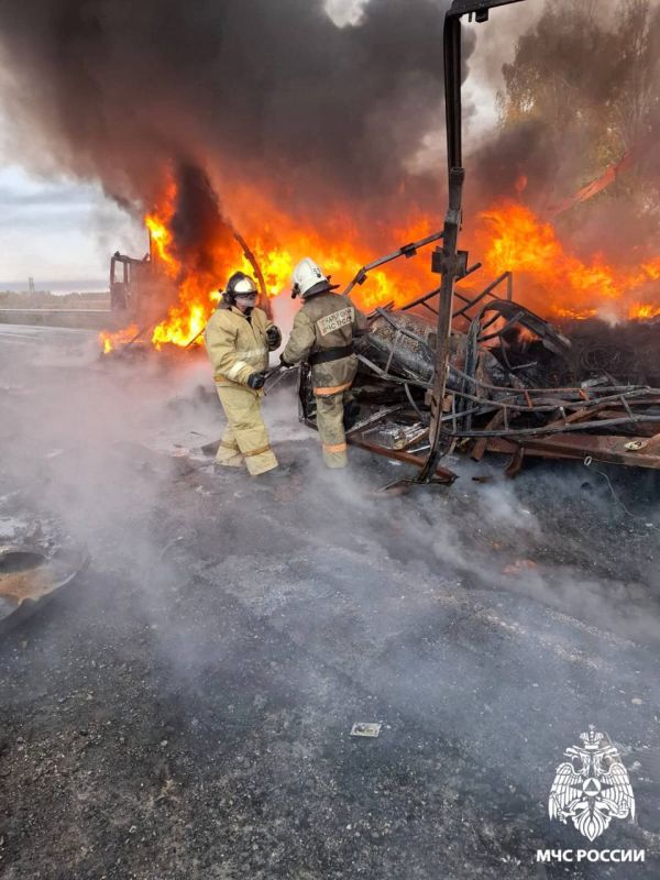 В результате столкновения произошло воспламенение двух автомобилей: одной из фур и Газели, в настоящее время воспламенение ликвидировано.На месте ДТП скончался водитель Газели. В настоящий момент на месте работают сотрудники Госавтоинспекции и...