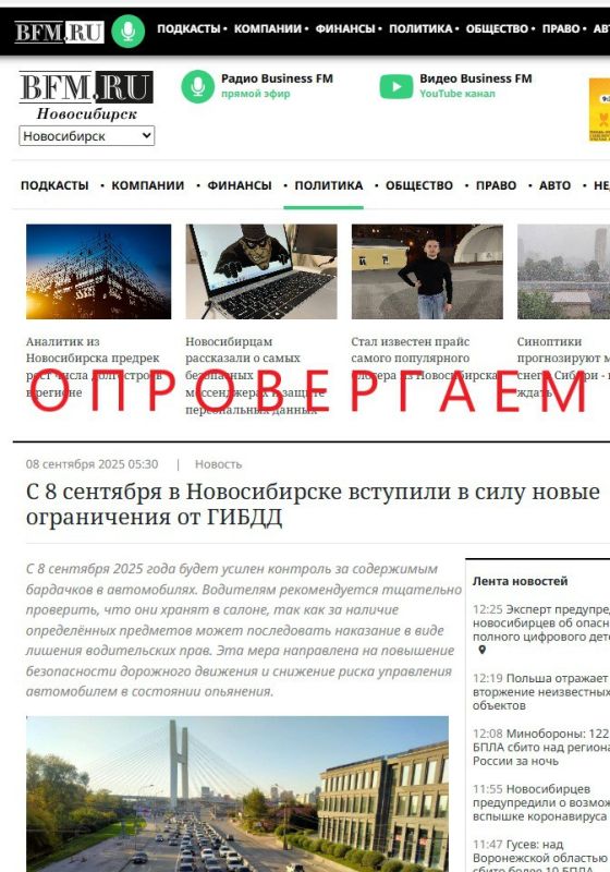В одном из региональных СМИ появилась информация о якобы новых ограничениях для автовладельцев со стороны Госавтоинспекции, которые вступили в силу с 8 сентября.В связи с этим ГУ МВД России по Новосибирской области официально сообщает, что...