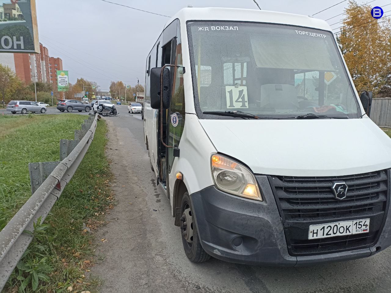 Кроссовер протаранил бок маршрутного такса № 14 в Бердске.