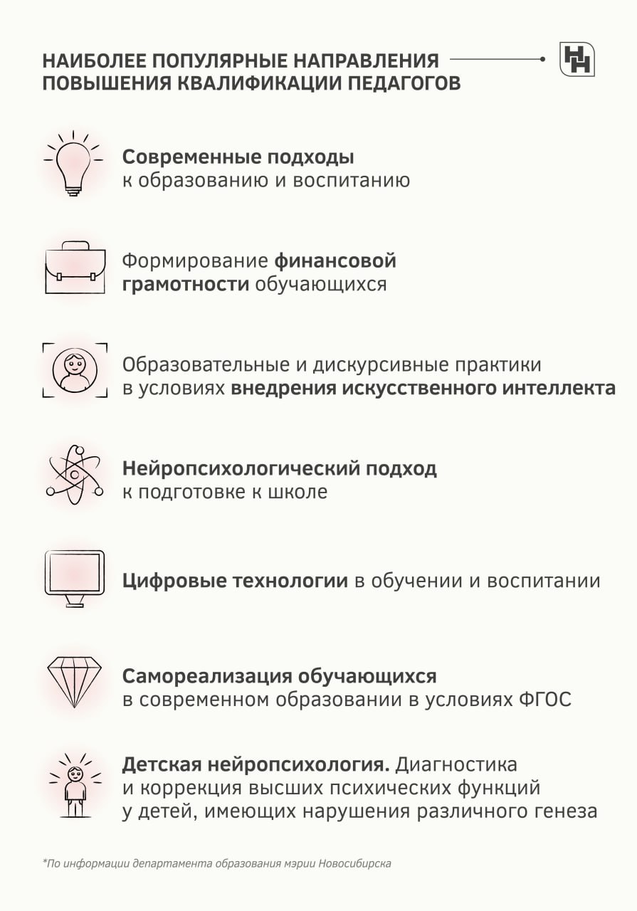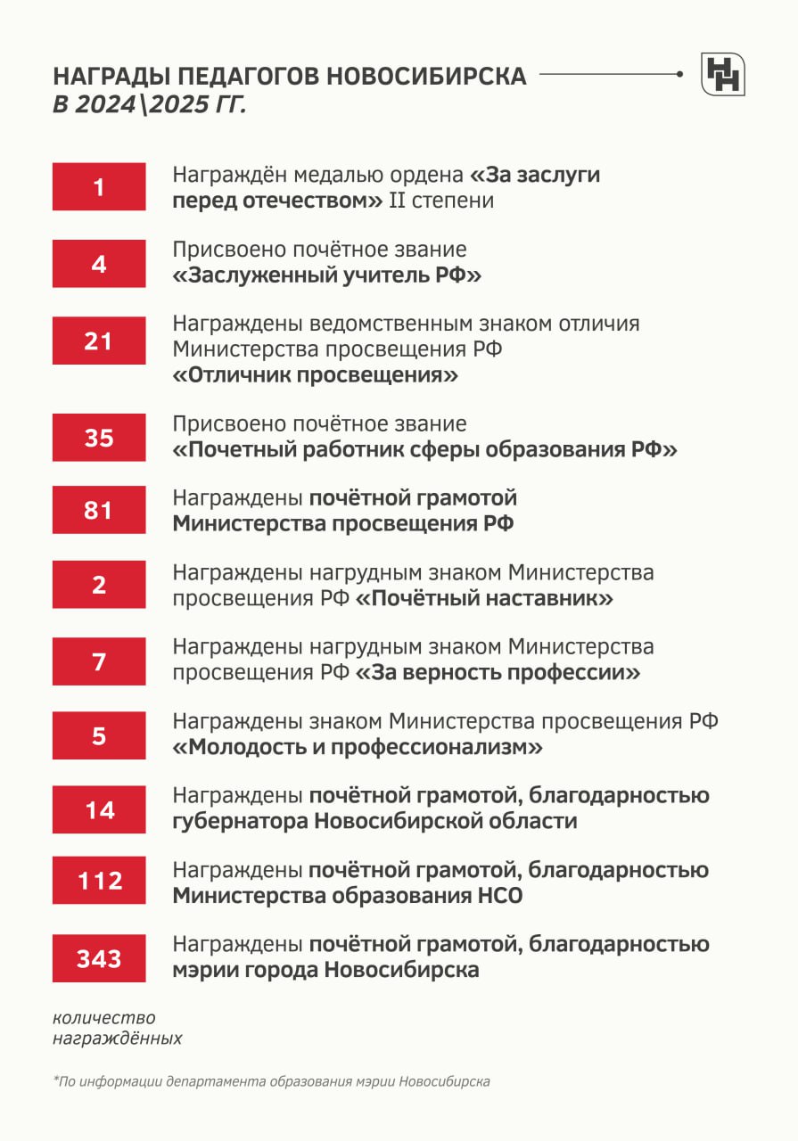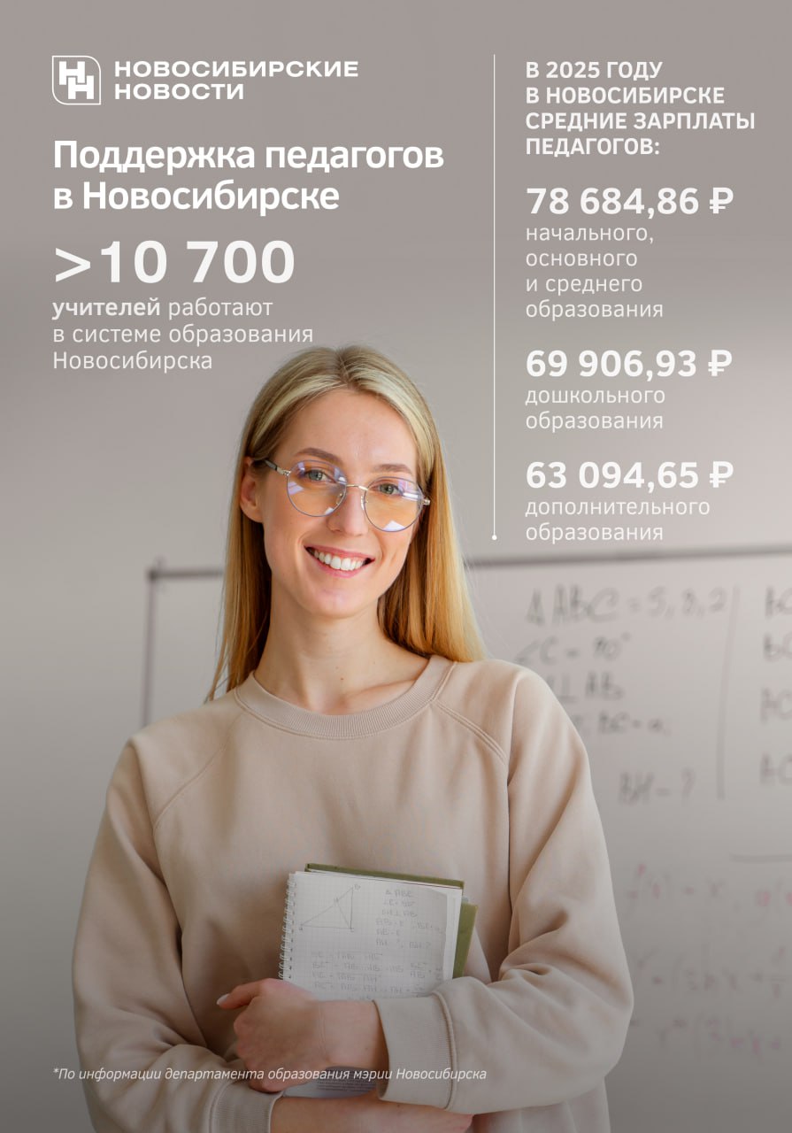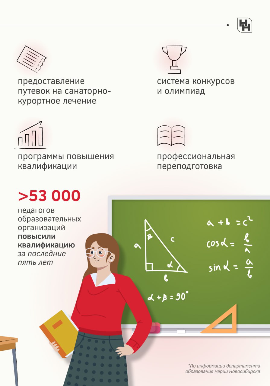 В Новосибирске насчитывается около 30 тысяч педагогических работников, более 10,7 тысячи из них — учителя. В карточках мы собрали интересную статистику о преподавателях нашего города.