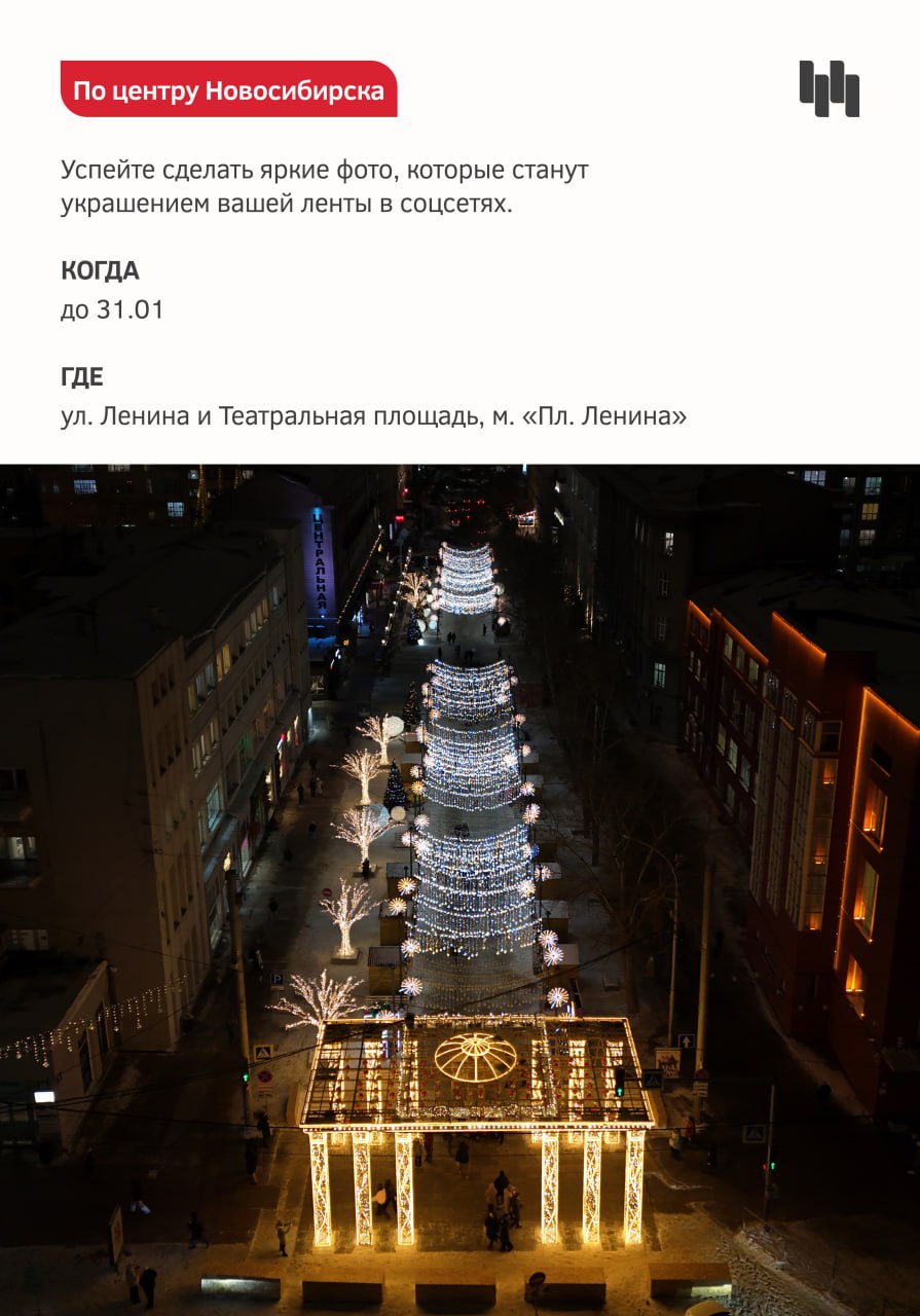 Шепчем каждому на ухо: салатный марафон пора заканчивать. Принесли в качестве альтернативы идеи для праздничных прогулок от Туристско-информационного центра Новосибирска.