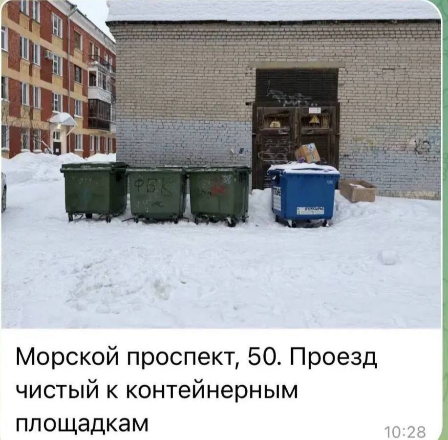 Если из-за погодных условий, например, снежного заноса, мусоровоз не может подъехать к контейнерам, регоператор информирует администрацию района. Специалисты администрации связываются с управляющей компанией, которая отвечает за очистку проезда.