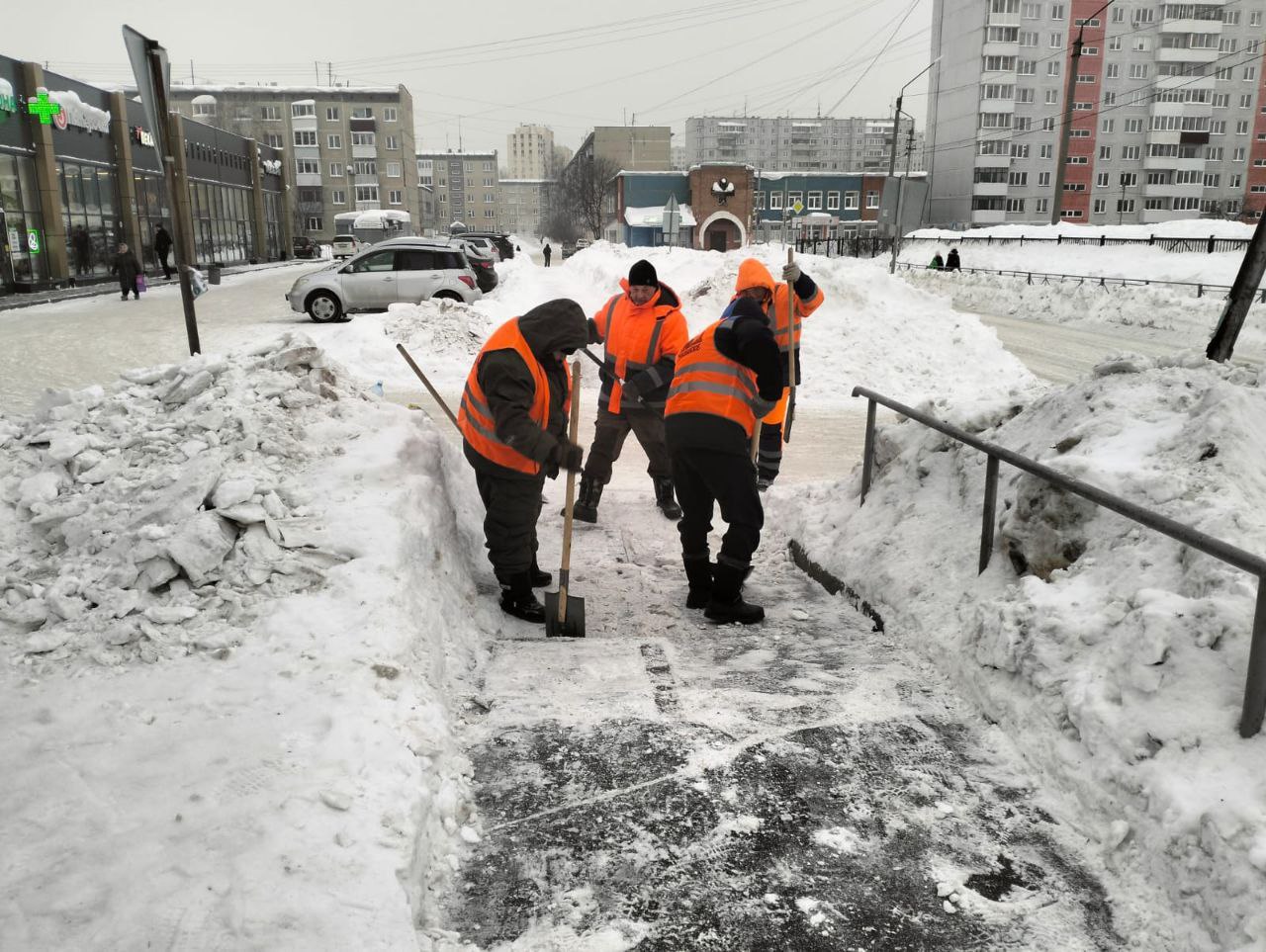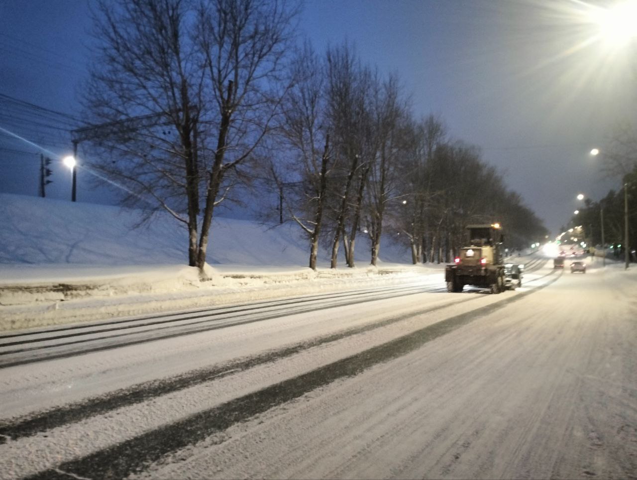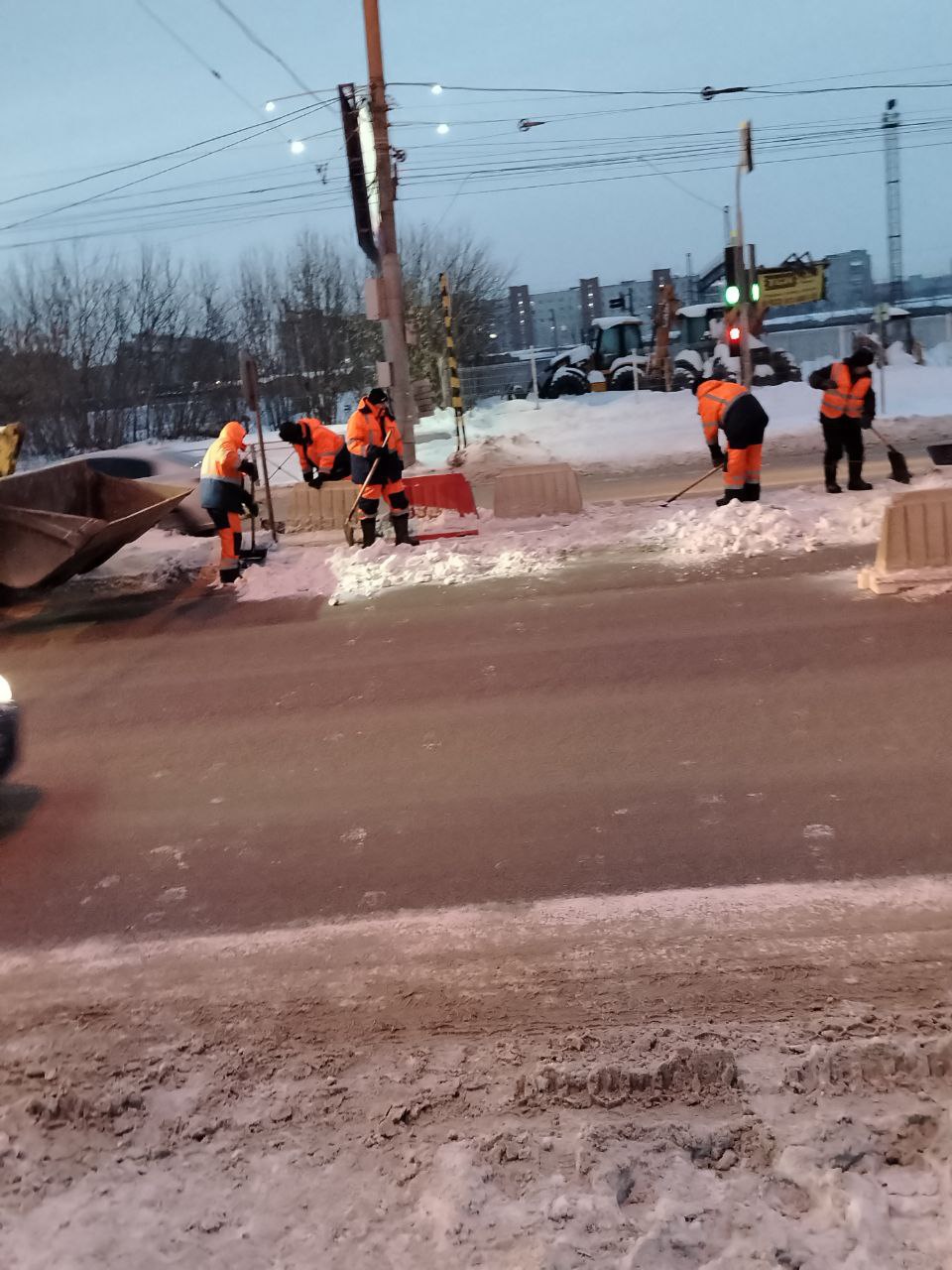 Подмели 1 990 км тротуаров и дорог, обработали противогололёдными материалами 1 228 км, очистили ото льда 28 км тротуаров, произвели грейдирование 283 км.