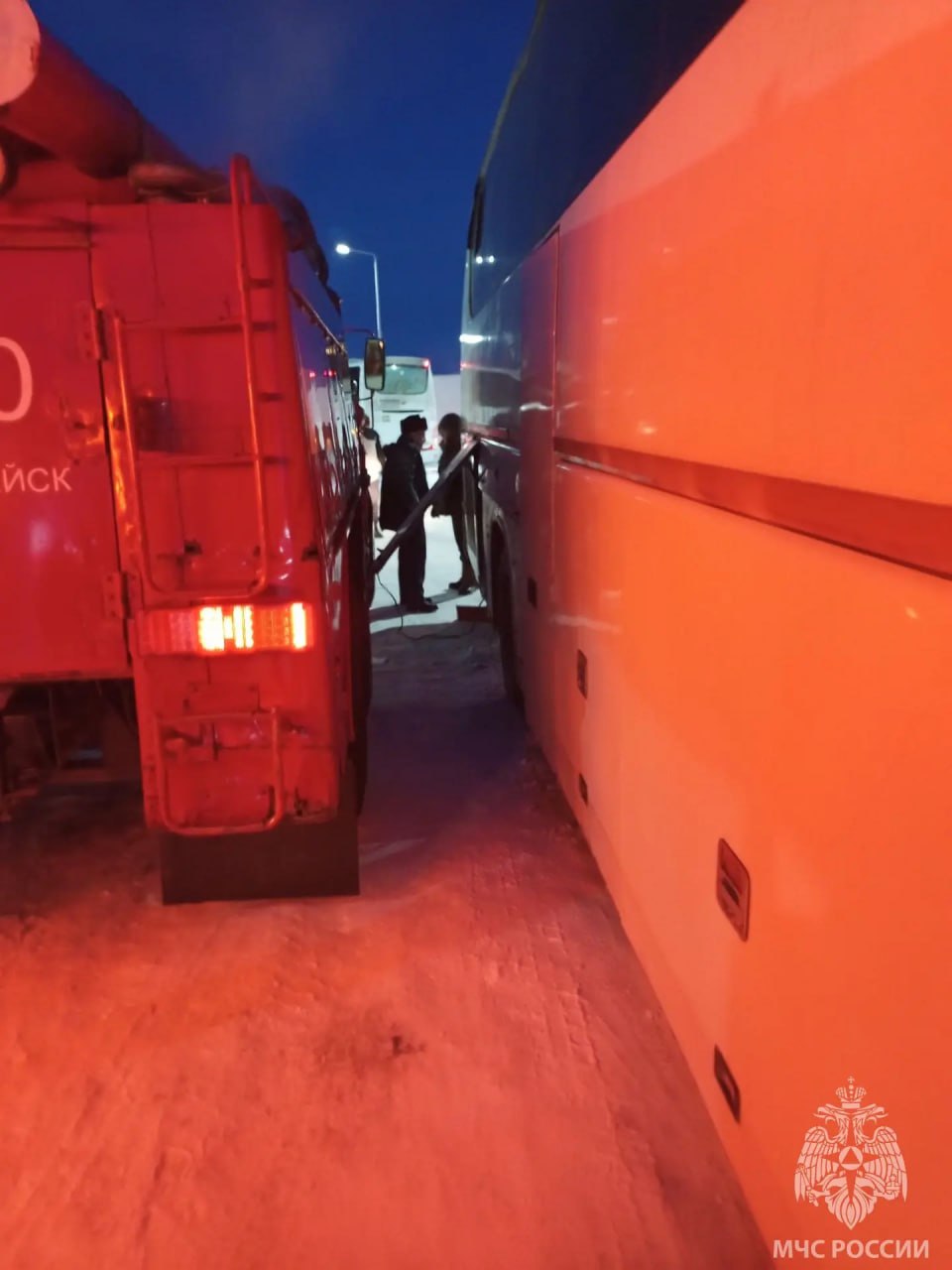 Рейс следовал из Усть-Каменогорска и заглох у поселка Заветы Ильича в Алтайском крае. На место прибыли спасатели. Пассажиров разместили в придорожном кафе, а автобус помогли отремонтировать.
