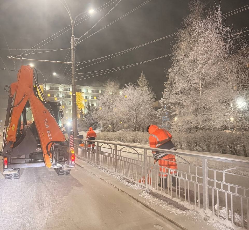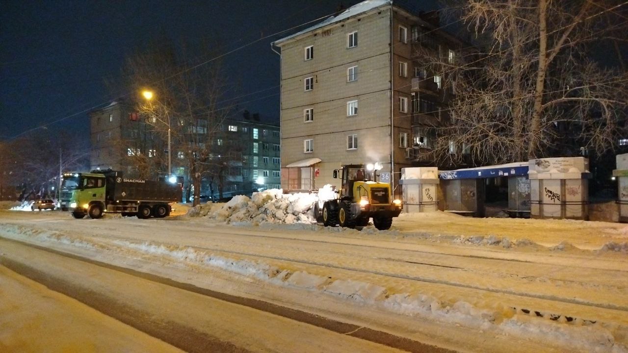 С магистралей и улиц города вывезли более 20 тысяч кубометров снега (примерно 1 380 самосвалов). С помощью роторной техники удалено около 12 тысяч кубометров снега.