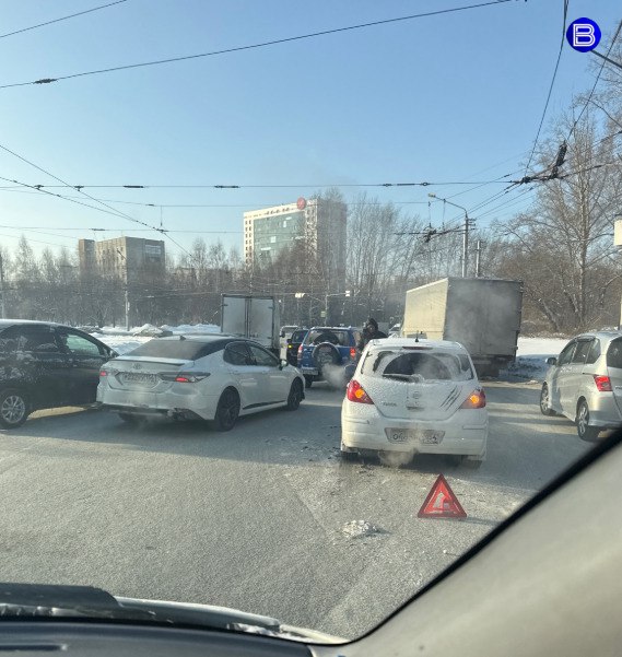 На кольцевой развязке площади Кирова в Новосибирске столкнулись два автомобиля.