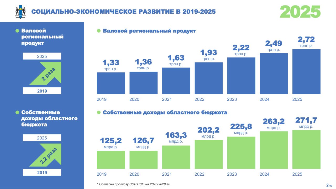 В начале выступления Андрей Травников подчеркнул, что в прошлом году в сравнении с 2019 годом валовой региональный продукт Новосибирской области вырос в два раза, а объём строительных работ и инвестиций – более чем в 2,5 раза. И динамика индексов физического объёма все эти годы стабильно опережала средние индексы по СФО и в целом по России.