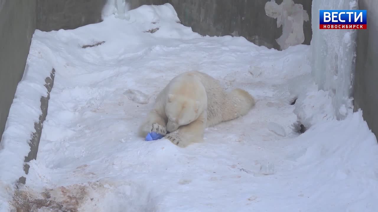 Полярный медведь Кай из новосибирского зоопарка снова удивил посетителей: вместо привычного подбрасывания любимой канистры он вдруг решил закопать её.