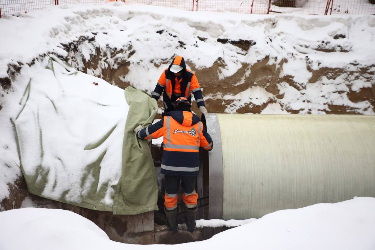 В прошлом году уже обновили более 1,3 км из общей протяжённости в 4,7 км. Работы ведём в зимний период, когда нагрузка на систему минимальна. Используем современную технологию «труба в трубу» и стеклокомпозитные материалы — они устойчивы к агрессивной среде и рассчитаны на длительный срок эксплуатации.