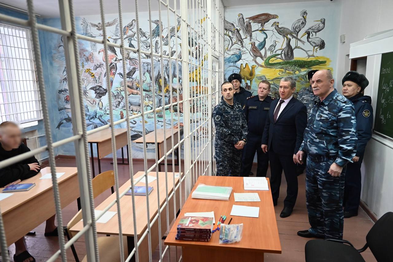 Кроме того, были осмотрены сборное отделение и режимные корпуса для содержащихся под стражей граждан, а также учебные классы для школьных занятий, комната досуга и сенсорная комната для работы психолога с несовершеннолетними.
