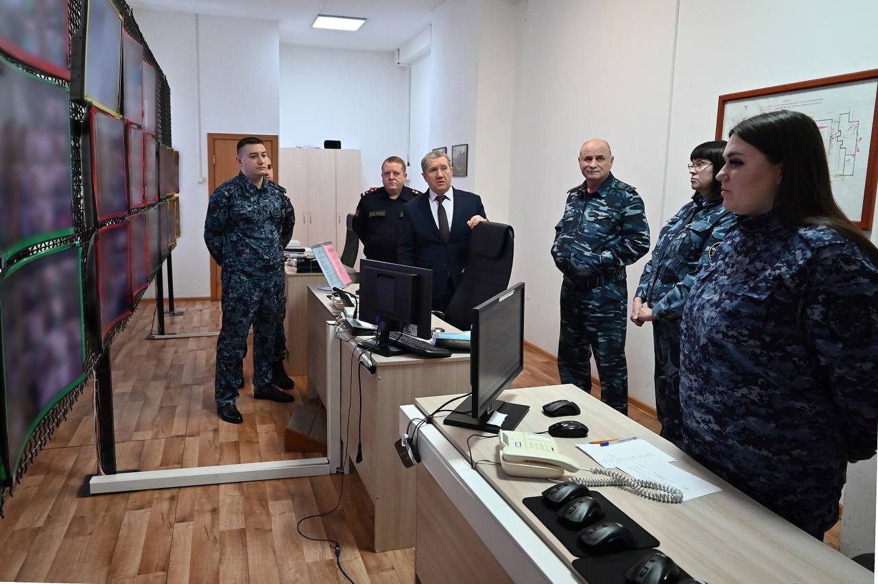 В СИЗО-1 Николай Васильев ознакомился с функционированием центрального поста систем охранного телевидения и дежурной части. В новом режимном корпусе начальник Главного оперативного управления ФСИН России уделил внимание условиям содержания женщин и несовершеннолетних, а также граждан, оставленных в следственном изоляторе для выполнения работ по хозяйственному обслуживанию.
