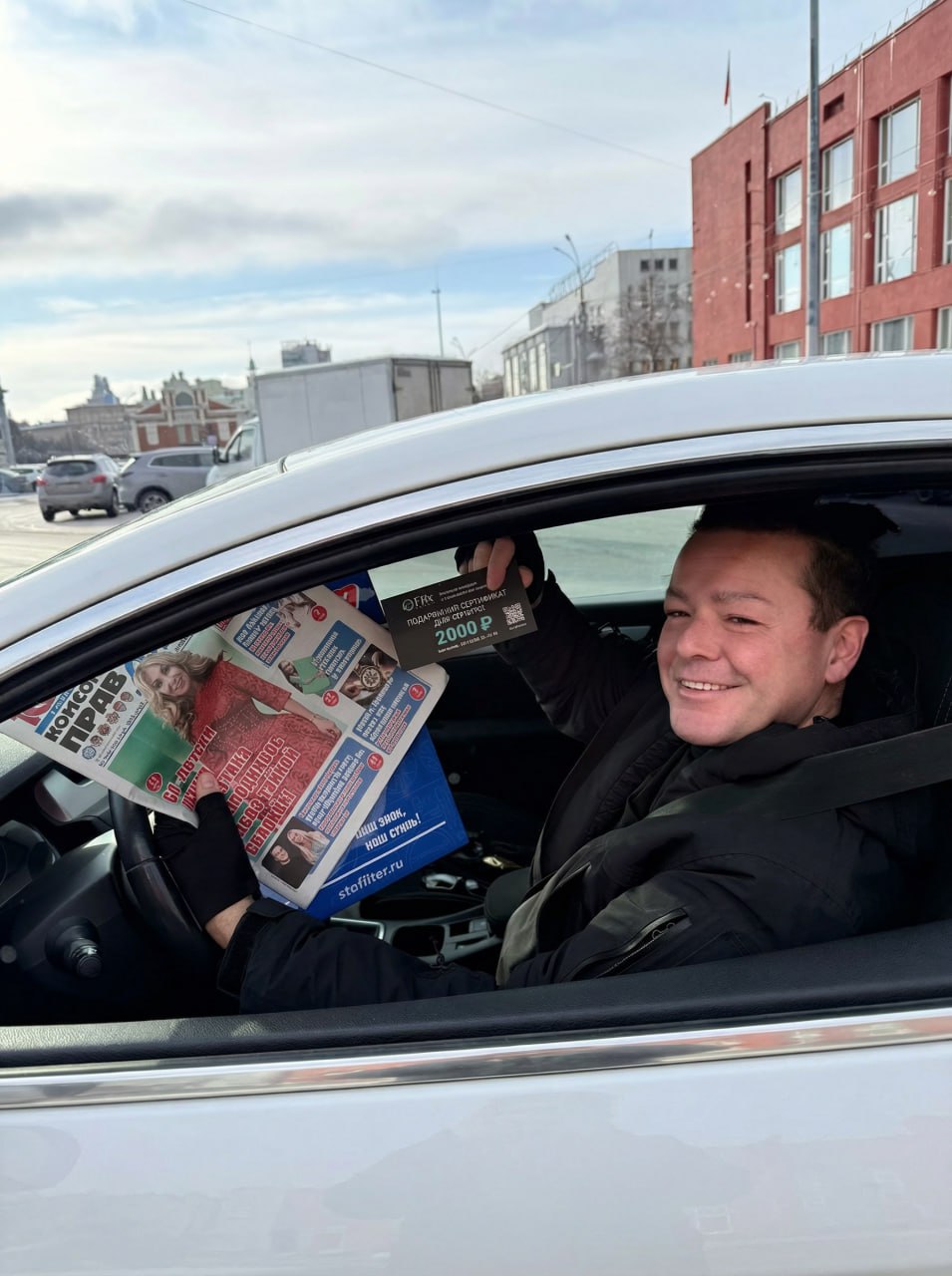Для мужчин-водителей стало приятным сюрпризом, что вместо обычной проверки документов им подарили сувениры от СТО «Фильтр»: брендированные ручки, влажные салфетки, ароматизатор для автомобиля и сертификаты на услуги.
