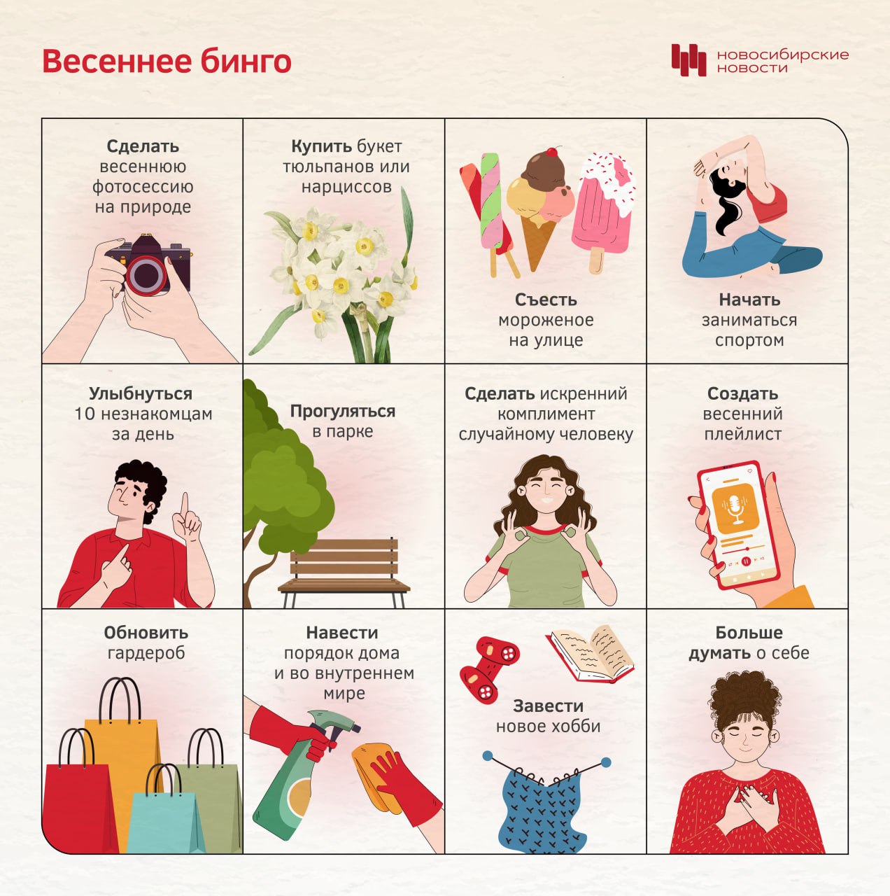 Ну что, мы дождались! Давайте встречать весну во всеоружии — готовыми к обновлению. Начнём прямо с понедельника: выполняйте задания весеннего бинго, делитесь впечатлениями и заряжайтесь хорошим настроением
