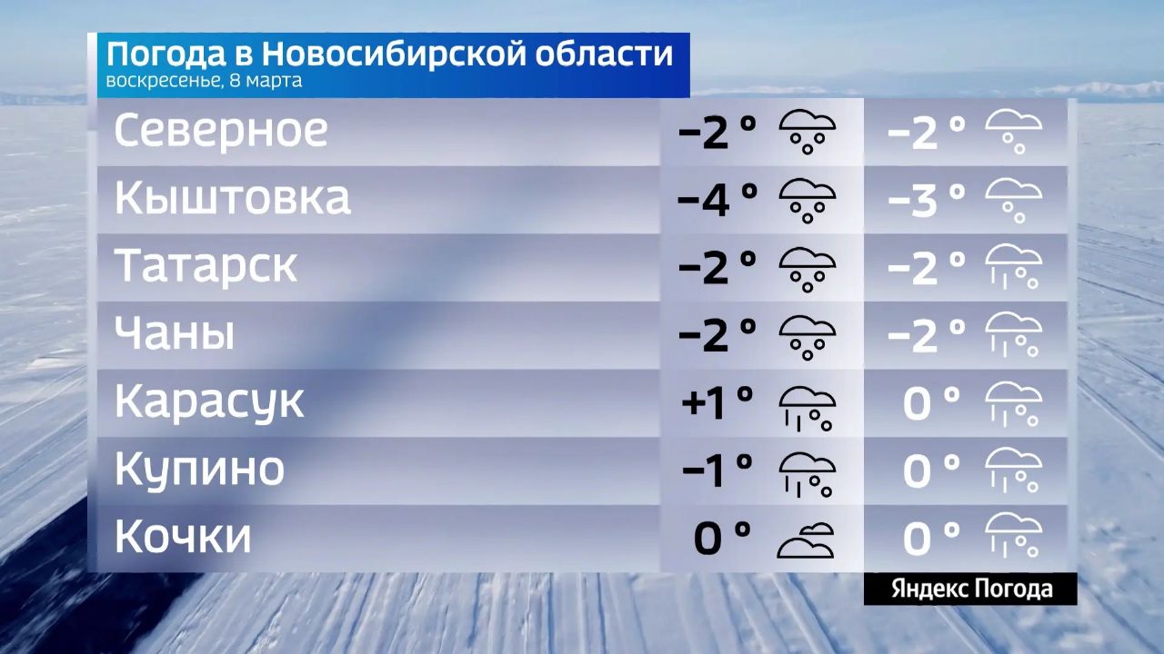 Прогноз погоды на 8 марта 2026 года в Новосибирской области.