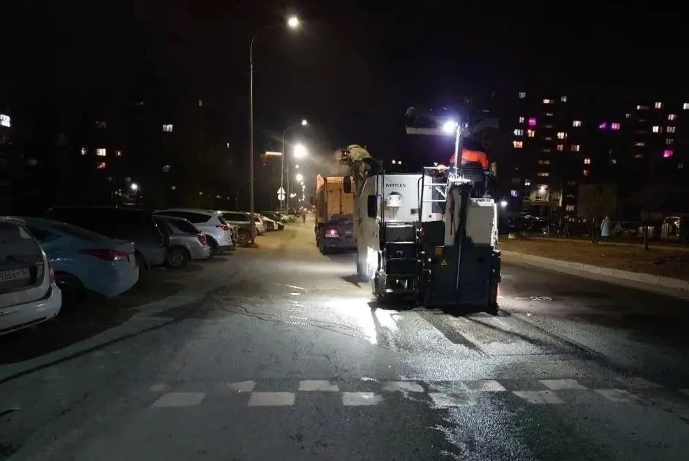 Приступили к ремонту дороги на улице Земнухова. Ведётся фрезерование участка, ночью рабочие начнут укладку слоя асфальта.